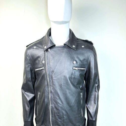 $ 100 – $ 250Price range: $ 100 through $ 250Men’s Slim Fit Racing Stripe Leather Jacket with Mandarin Collar