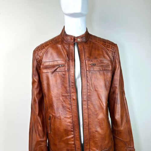 • Rider Features: Includes a mandarin or snap-tab collar, a full-zip front, and a classic biker cut designed for comfort while riding.