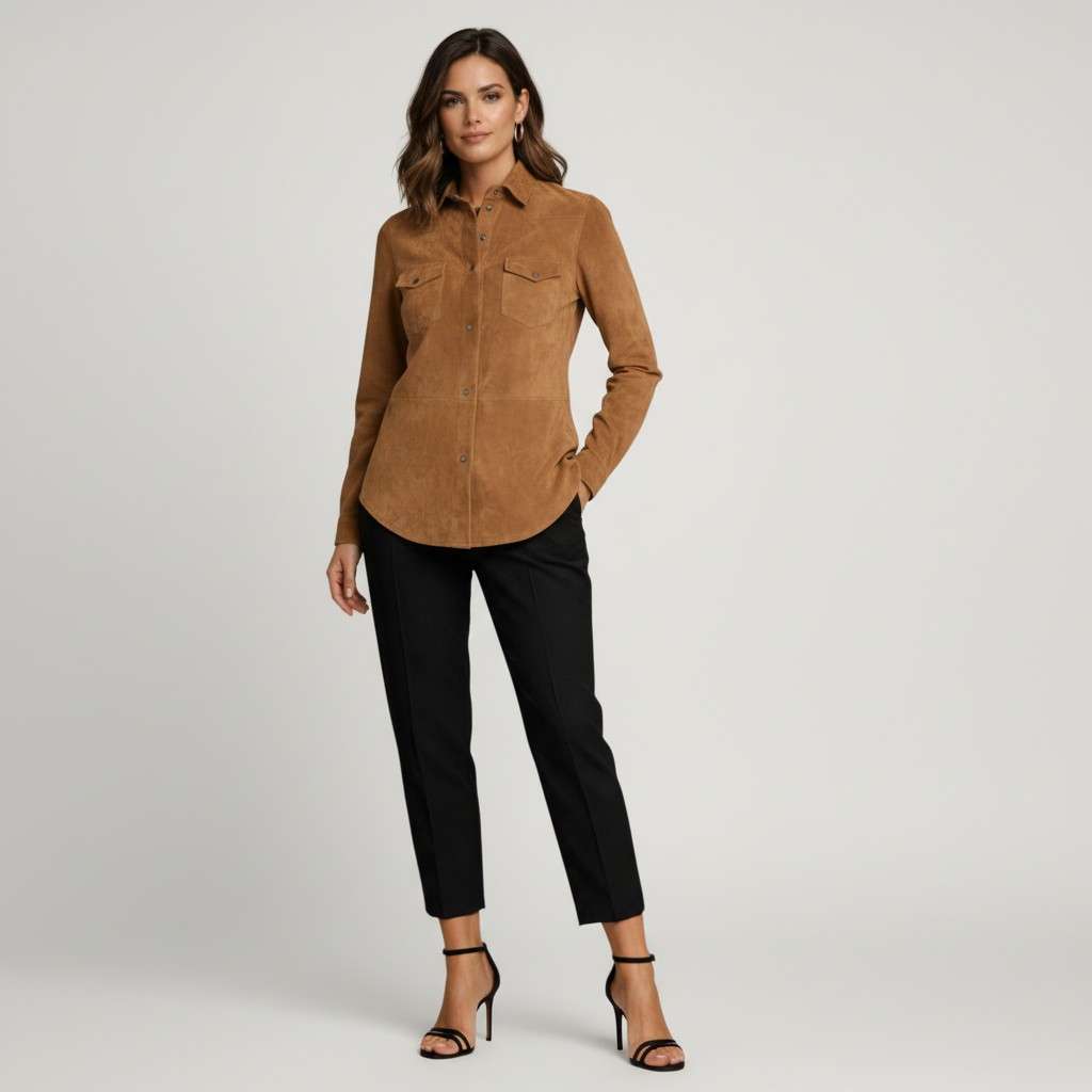 ✔ Premium tan brown suede shirt with soft, smooth texture
