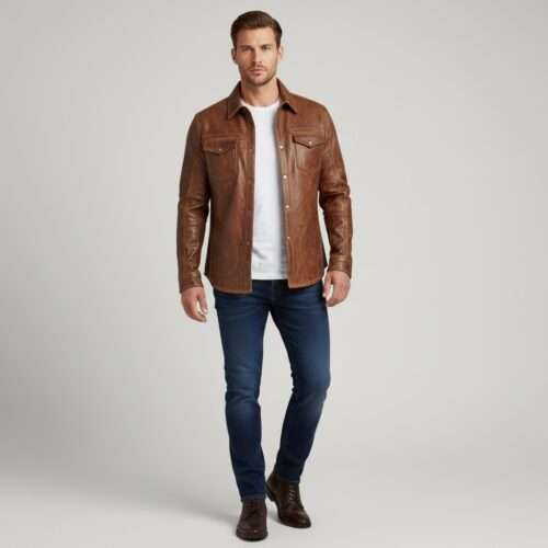 • A versatile leather shirt jacket perfect for casual and rugged outfits
