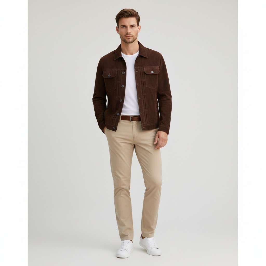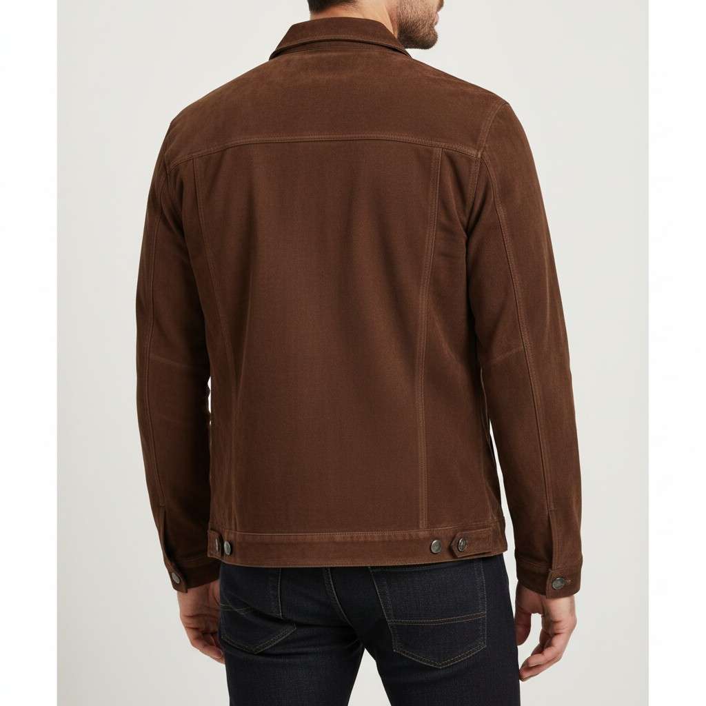 A premium brown suede cowboy jacket designed in a classic button-down style, blending rugged western charm with modern everyday wear for men.