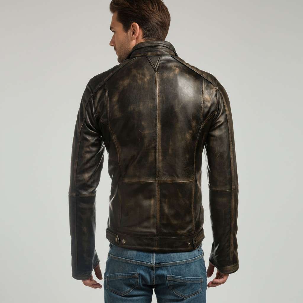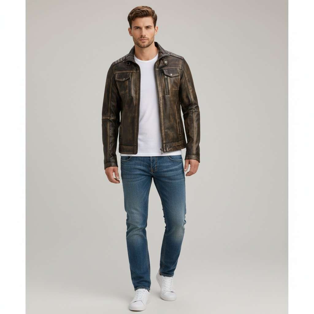 • 1x Slim Fit Waxed Leather Jacket for Men