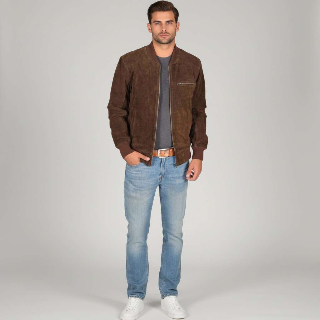 • 1x Men’s Dark Brown Suede Bomber Jacket