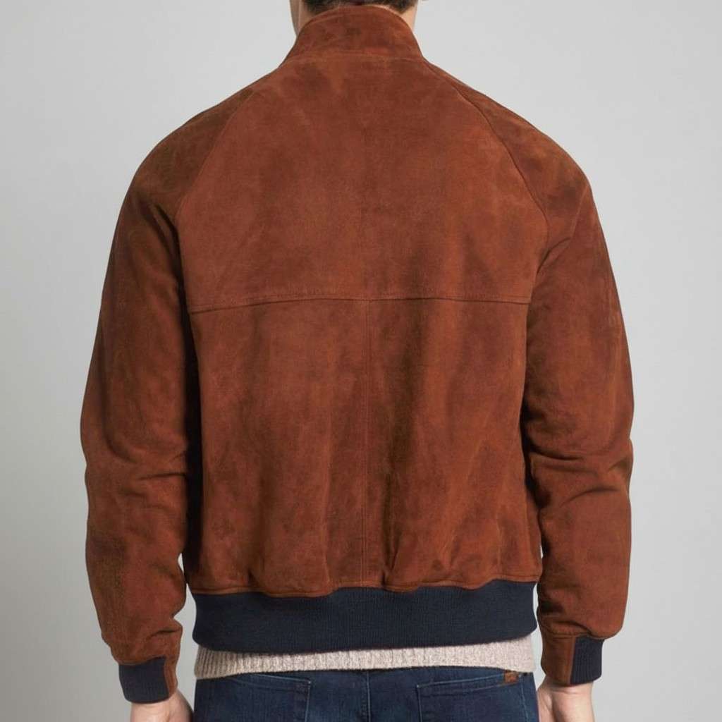 • Stylish orangy-brown suede finish with classic bomber silhouette