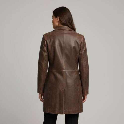 ✔ Long leather trench coat length for dramatic presence