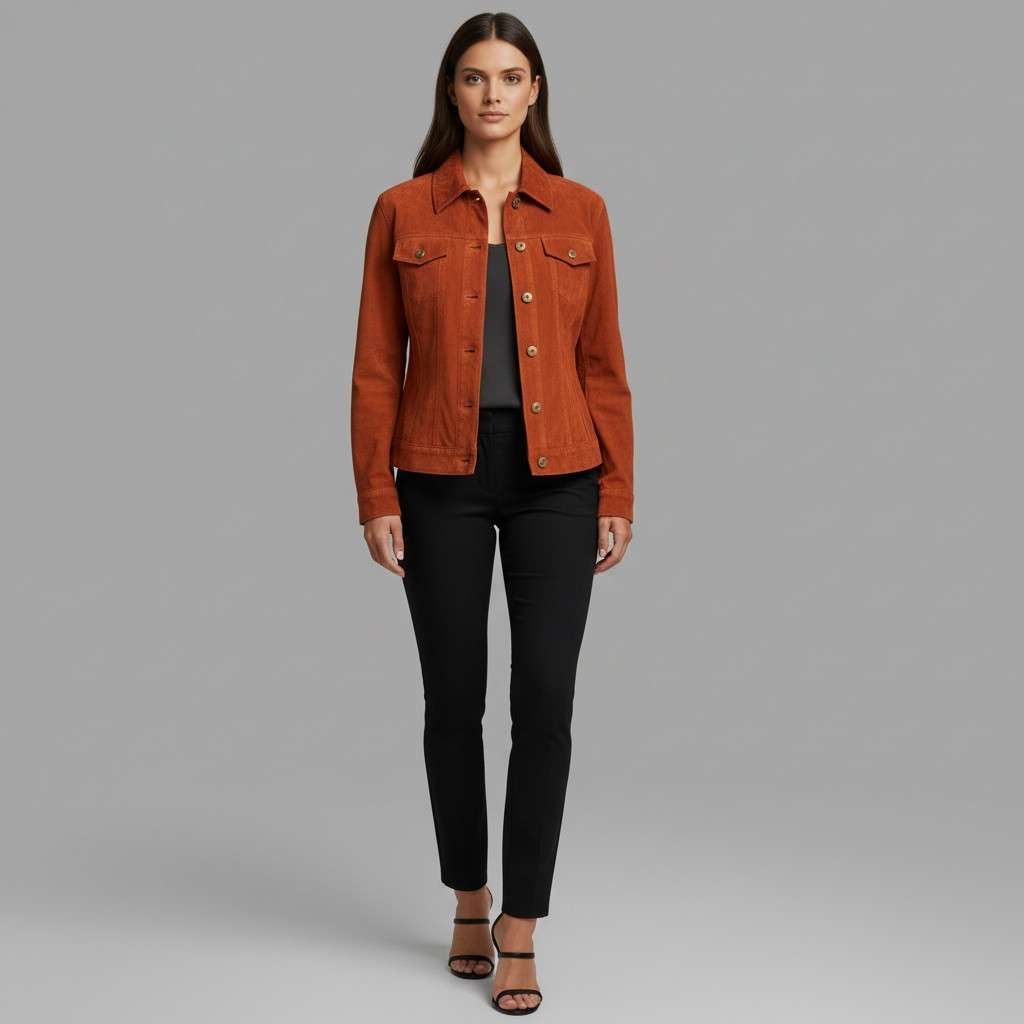 ✔ Classic suede trucker jacket silhouette inspired by vintage workwear