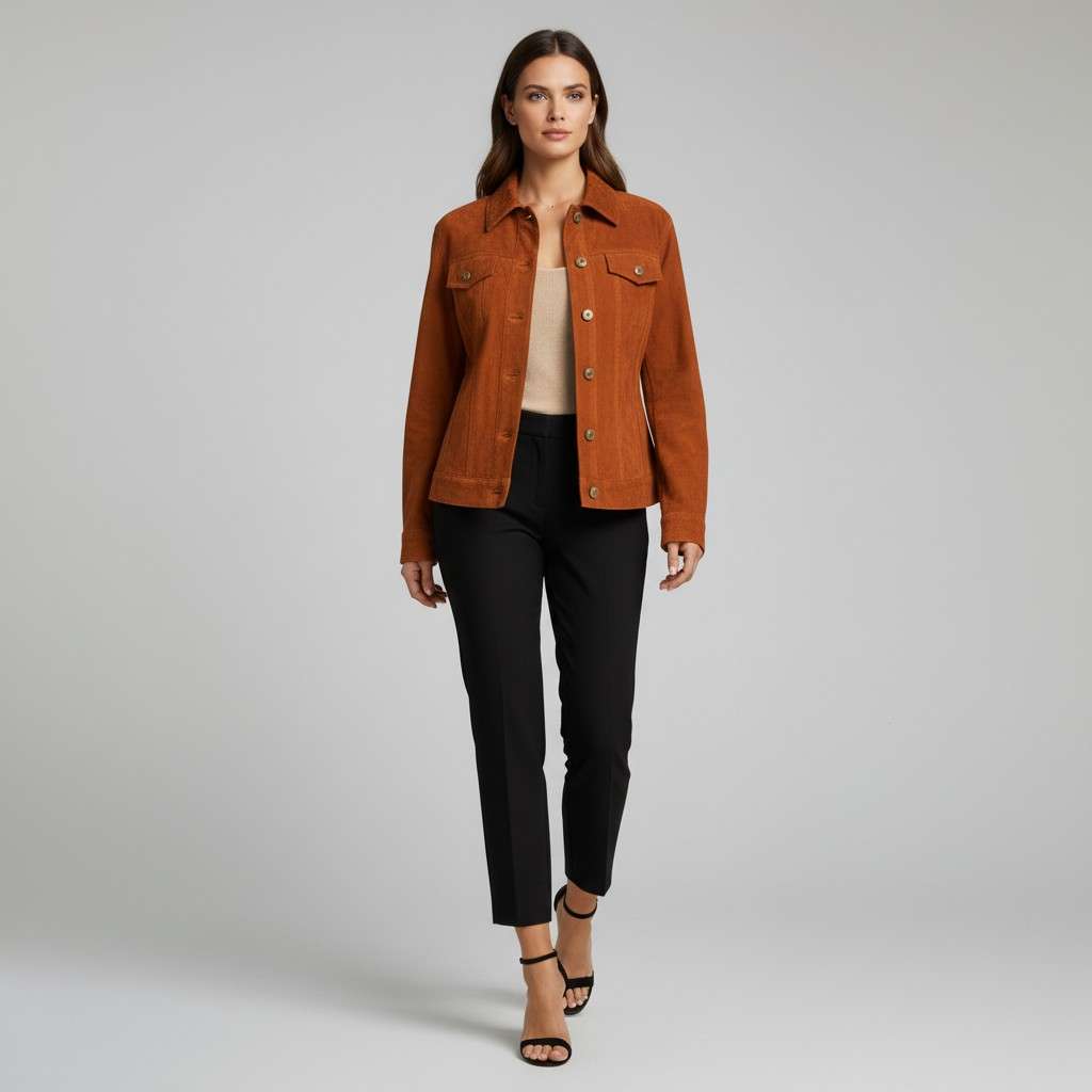 ✔ Versatile suede shirt jacket design for casual or dressed-up outfits